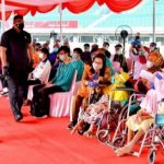 BEKASI–Presiden Joko Widodo berkunjung ke Stadion Patriot Candrabhaga, Kota Bekasi, Jawa Barat, yang menjadi lokasi pelaksanaan vaksinasi massal. Selama tiga harI, sekitar