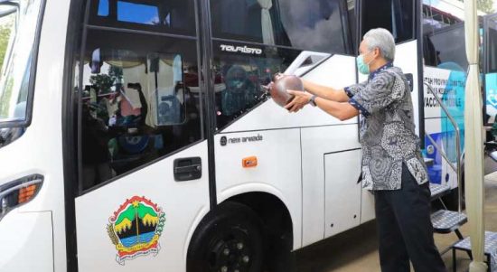 MAGELANG–Dua dari lima bus vaksin siap jemput bola ke remote area di daerah. Gubernur Jateng Ganjar Pranowo berharap keberadaan bus vaksin atau vaksin