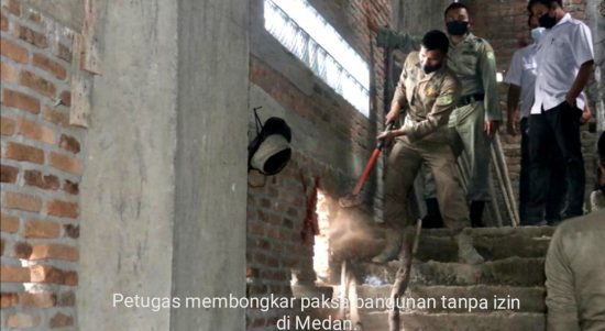 MEDAN – Pemerintah Kota Medan melalui Satuan Polisi Pamong Praja (Satpol PP) menertibkan bangunan bermasalah di Jalan Setia Budi No 144, Kelurahan