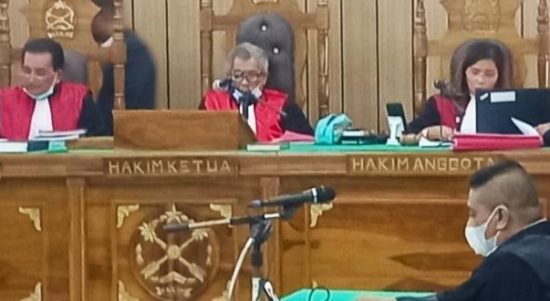 MEDAN – Dua mantan petinggi di Bank Sahabat Sampoerna (BSS) Cabang Medan dalam persidangan secara video call (VC), Selasa (20/4/2021), di Ruang