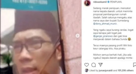 BANDUNG – Nama Gubernur Jawa Barat, Ridwan Kamil, dan Bupati Sumedang Dony Ahmad Munir, dicatut oknum tak bertanggung jawab untuk menipu. Kabar