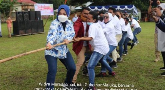 AMBON – Pembina Utama Komite Permainan Rakyat dan Olahraga Tradisional Indonesia (KPOTI) Provinsi Maluku, Widya Pratiwi Murad Ismail, membuka Festival Solohua di