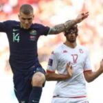 Penyerang Australia Mitchell Duke dikuntit terus pemain Tunisia setelah mencetak gol kemenangan 1-0. (Instagram) JAKARTA – Australia menang tipis 1-0 atas Tunisia