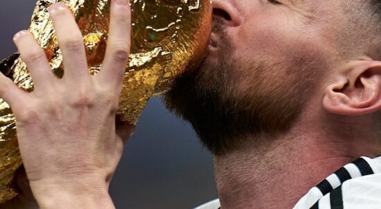 Lionel Messi mengangkat dan mencium tropi Piala Dunia. (fifaworldcup) JAKARTA – Bintang sepak bola dunia Lionel Messi akan terus membela Timnas Argentina