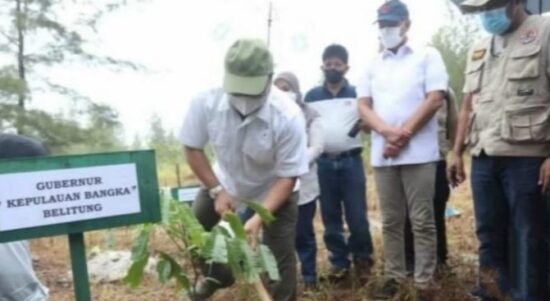 PANGKAL PINANG – Komisaris Utama PT Indonesia Asahan Alumunium (Inalum) Letnan Jenderal (Letjen) TNI (Purn) Doni Monardo meninjau sekaligus menanam pohon di