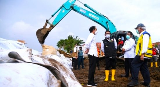 JAKARTA – Presiden RI Joko Widodo (Jokowi) meninjau perbaikan tanggul Sungai Citarum di Kecamatan Pebayuran, Kabupaten Bekasi, Jawa Barat, Rabu (24/02/2021). Tanggul