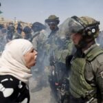 Seorang wanita Palestina berdebat dengan polisi perbatasan Israel di Tepi Barat. (Mohammad Torokman/Reuters) JAKARTA – Seorang pejabat senior Departemen Luar Negeri AS