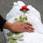 Sejumlah orang meletakkan bunga di atas mayat anak-anak yang dikafani secara simbolis di Lapangan Palestina, Teheran, Iran, Senin (13/11/2023). (Reuters) YERUSALEM –