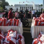 Presiden Jokowi membagi-bagikan sembako kepada warga yang melintas di depan Istana Negara. (Antara Foto) JAKARTA – Kepala Sekretariat Presiden, Heru Budi Hartono,
