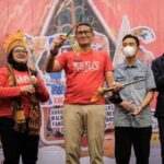 Menparekraf Sandiaga S Uno bersama Walikota Solo Gibran Rakabuming Raka dan Genpi di Solo, Sabtu (5/11/2022). SOLO – Menteri Pariwisata dan Ekonomi