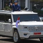 Prabowo Subianto menaiki Maung yang menjadi kendaraan kepresidenan. (Antara Foto) JAKARTA — PT Pindad, produsen alat pertahanan dalam negeri, memulai produksi kendaraan taktis